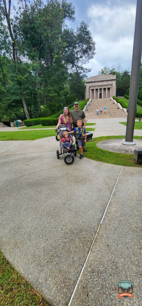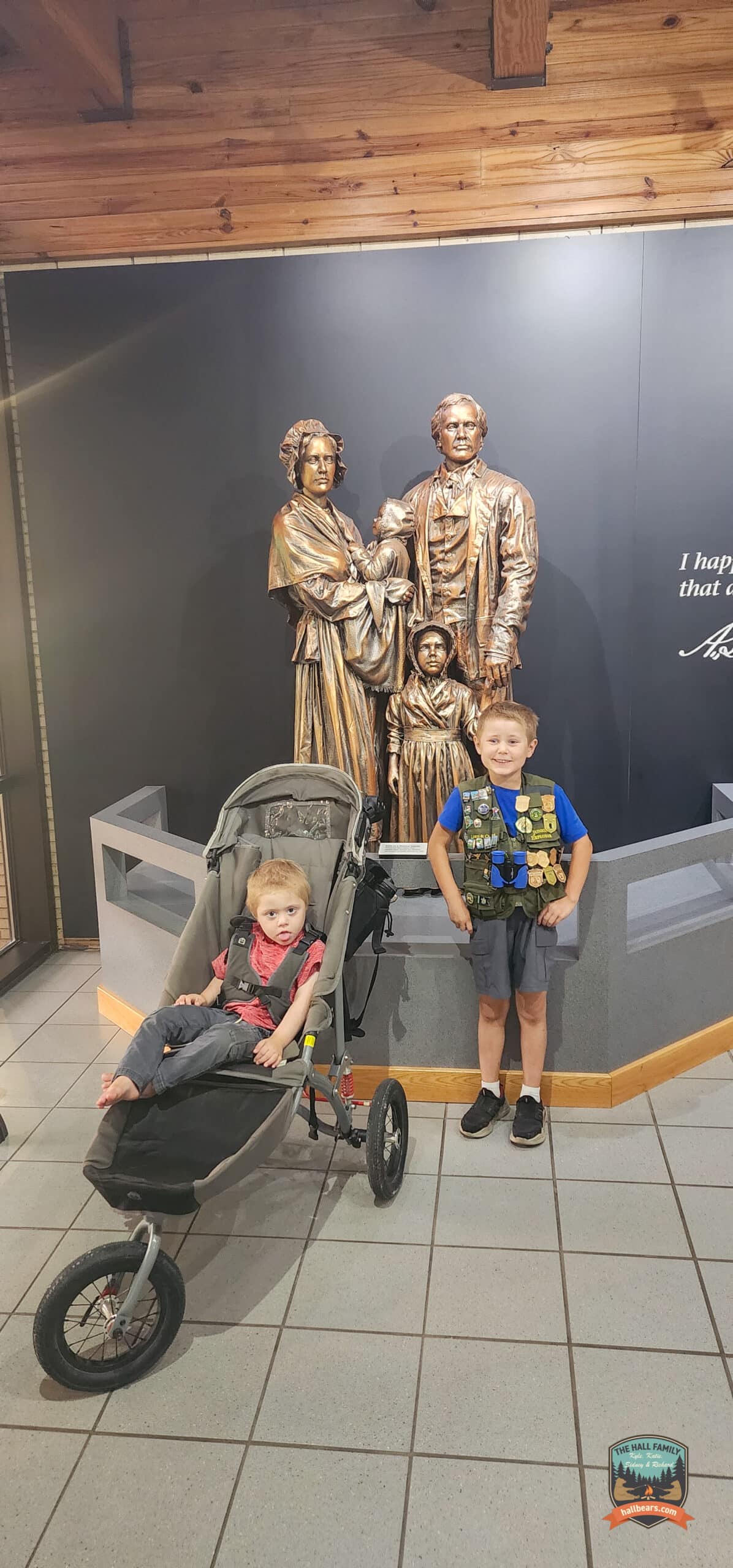 We drove about an hour east to Abraham Lincoln Birthplace National Historical Park in Hodgenville, KY. We are trying something new with Sidney’s roadschooling curriculum. Whenever possible we are getting the Jr. Ranger Books for National Parks online and printing them off. Then in the days before we go to a given park he does as much of the book that can be done before we get on-site. We started in the Visitor’s Center where Sidney only had one page left if the Jr. Ranger Book. He quickly finished his book.
