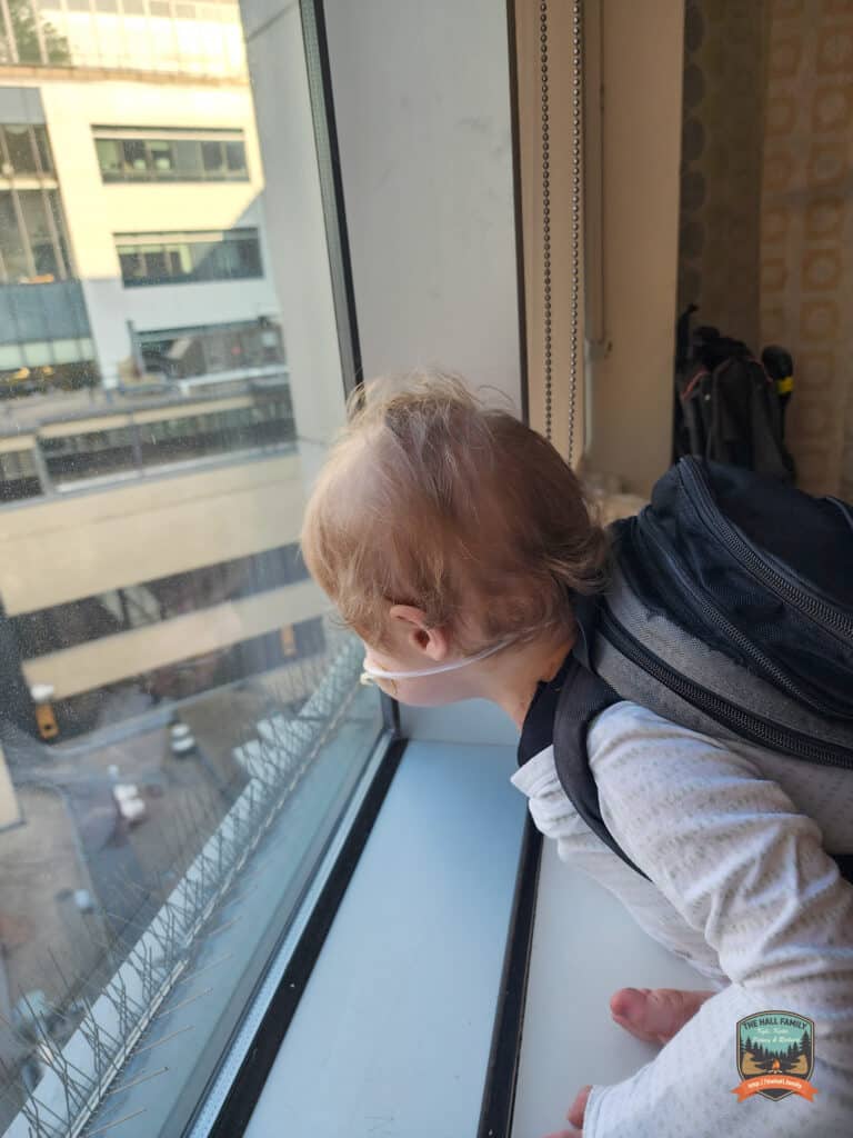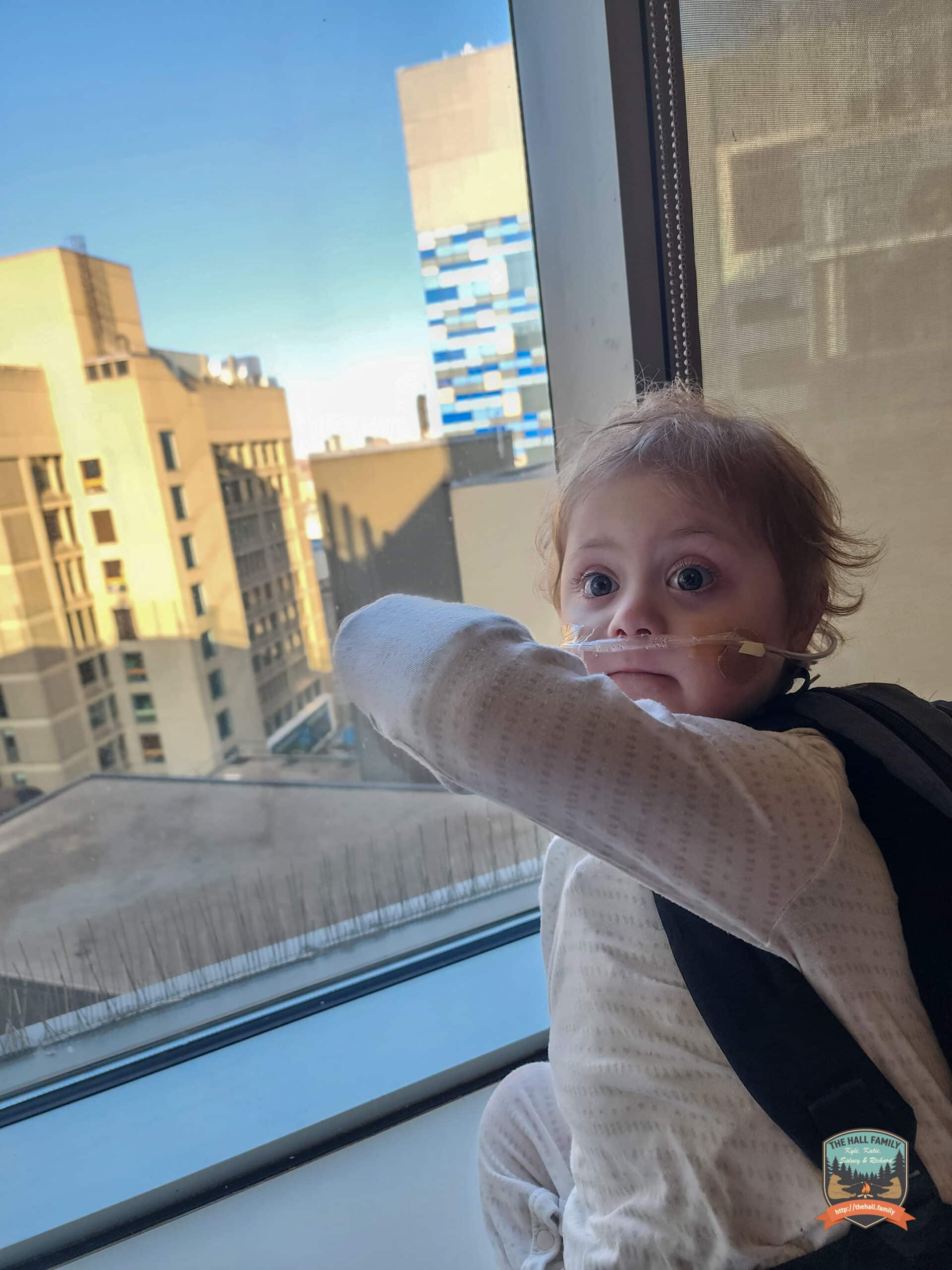 Today was a pretty easy day. We have our discharge criteria: (1) room air during the day for 24 hours without requiring extra O2 support, 2) 1L O2 while sleeping for 24 hours without requiring extra O2 support, 3) get our feeding pump supplies, 4) prescriptions ready from the pharmacy) so we’re just taking it easy today! Richard was in a good mood and getting spunkier as the day progressed. We walked around the unit, read books, played on the floor, then cuddled on the window bench and looked outside.