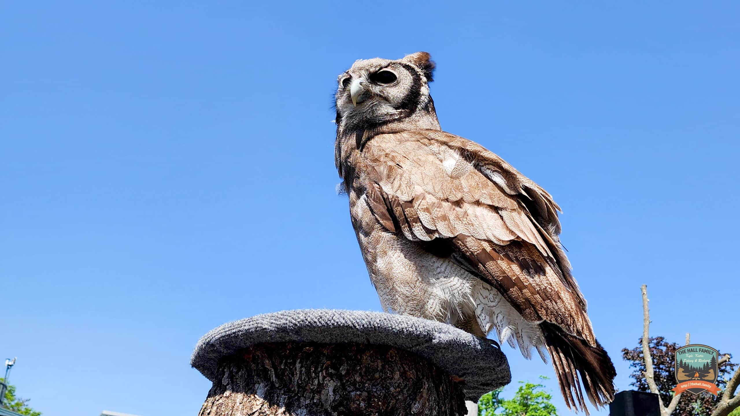 The day started out sunny but with a cool breeze which was nice as most of the exhibits were outside. I would say the highlights were the elephants, the goat petting/contact area, the Faces of the Rainforest exhibit which had these super cute Golden Lion Tamarins (and their tiny babies!!) and a two-toed Sloth(!), and the interactive bird show. I actually volunteered in the bird show (which if you know me is totally out of character to volunteer for any part of a show like that) but I’m proud of myself for doing so- I sat at the front of the stage below a large stump on stage. They brought out a Great Horned Owl which flew to a pedestal in the audience area, then the bird trainer had the owl fly over my head to the stump in front of which I was sitting. I was able to make a slow- motion video of the flight! It was very cool!
