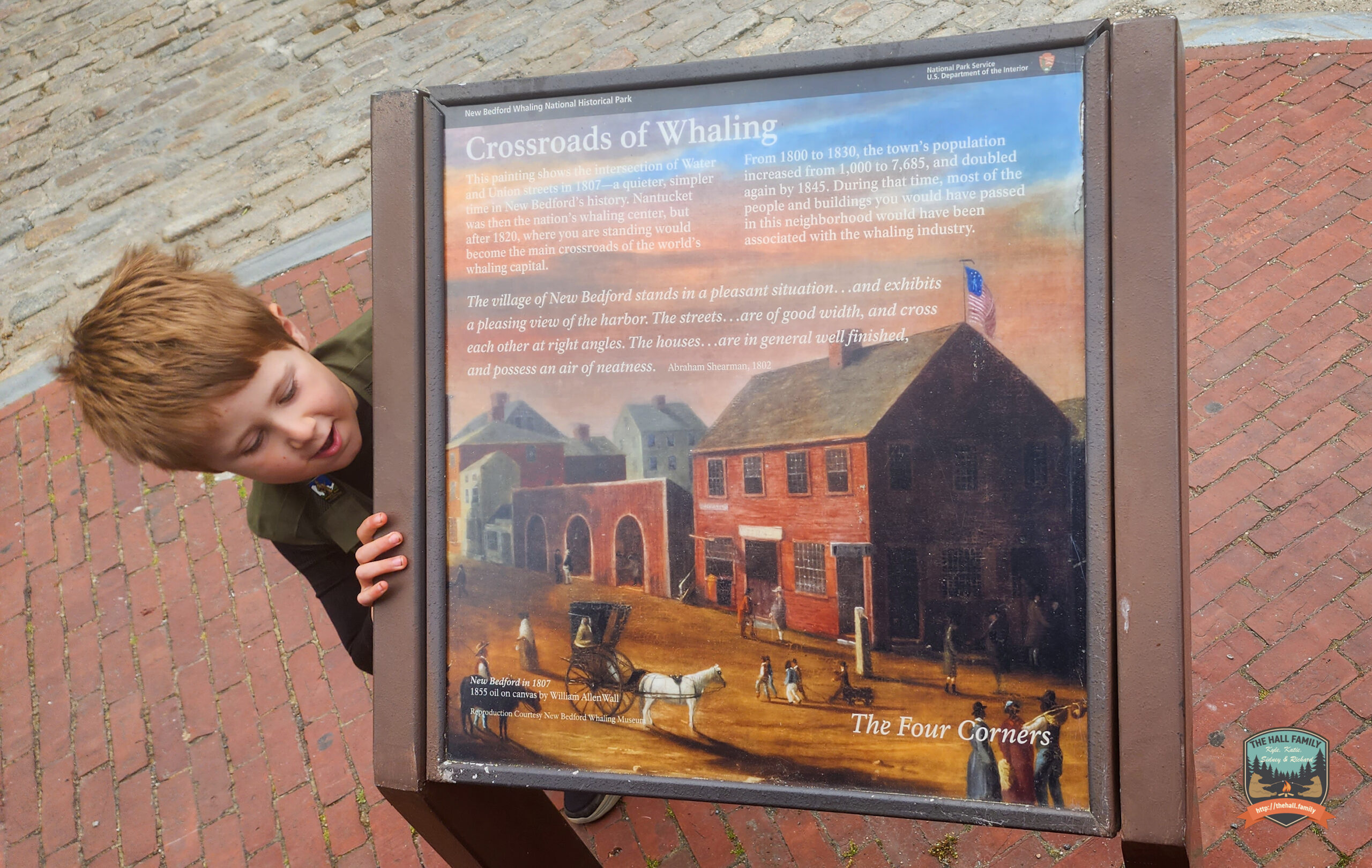 We started at the New Bedford Whaling National Historic Park https://www.nps.gov/nebe/index.htm and Sidney started working on his Junior Ranger booklet. One page of the booklet is completing a scavenger hunt of items in and around the town.